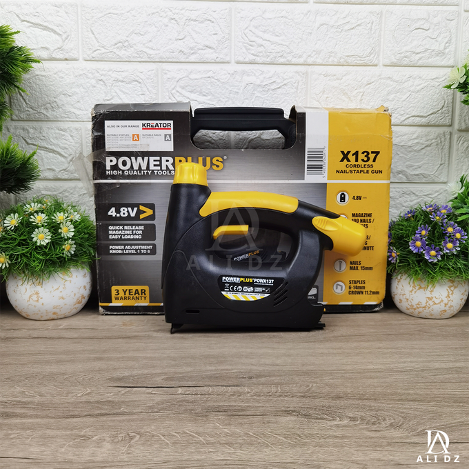 باستخدام مسدس المسامير/الدباسة هذا، يمكنك تثبيت الخشب أو الأسلاك الشبكية أو الورق المقوى أو القماش،... على الخشب أو المواد المشابهة. يتسع المسدس لما يصل إلى 100 مسمار أو دبوس ويمكنه إطلاق ما يصل إلى 30 مسمارًا أو دبوسًا في الدقيقة. يسهل ملء مخزن الإطلاق السريع ويضمن إعادة التحميل السريع